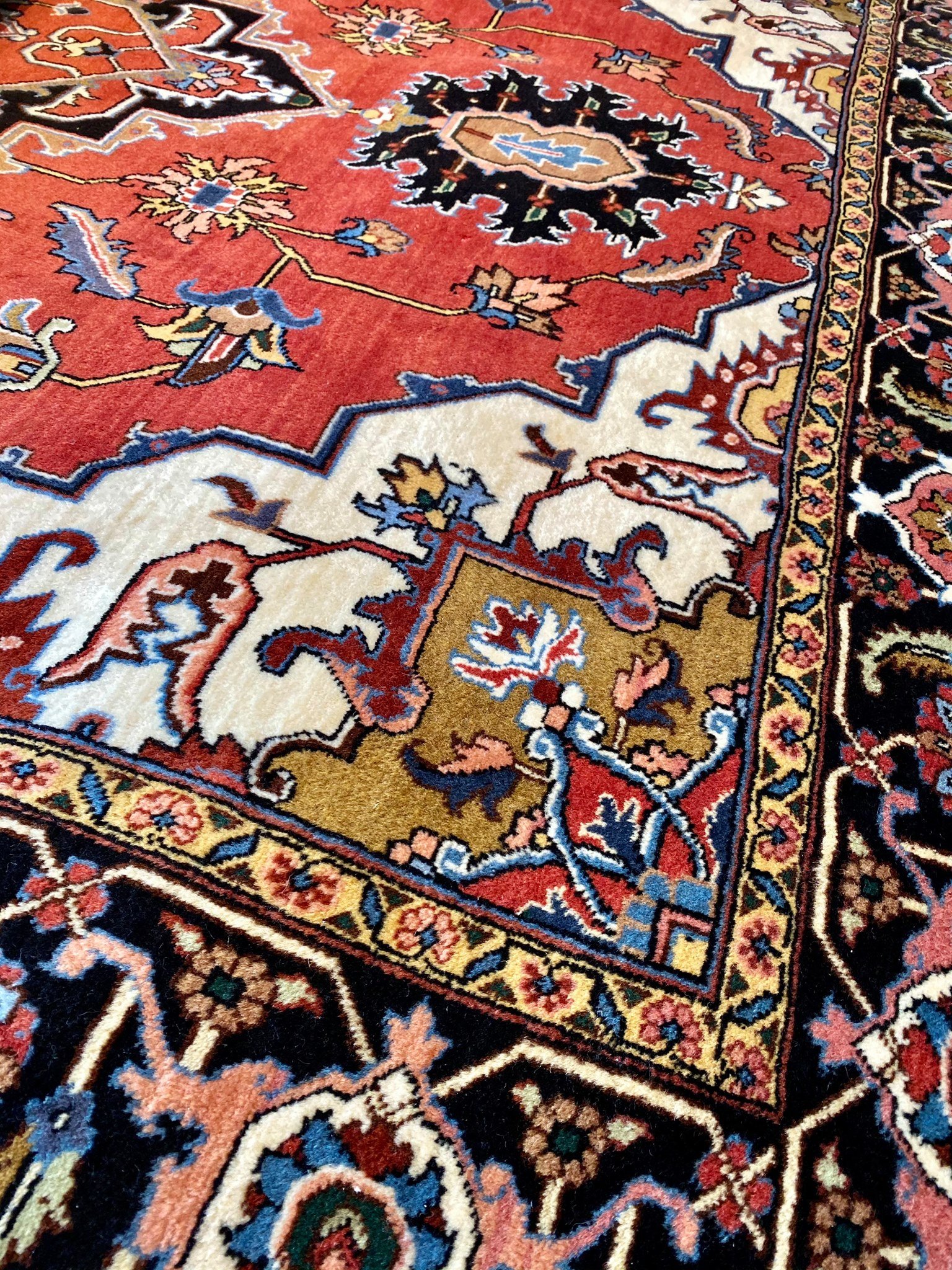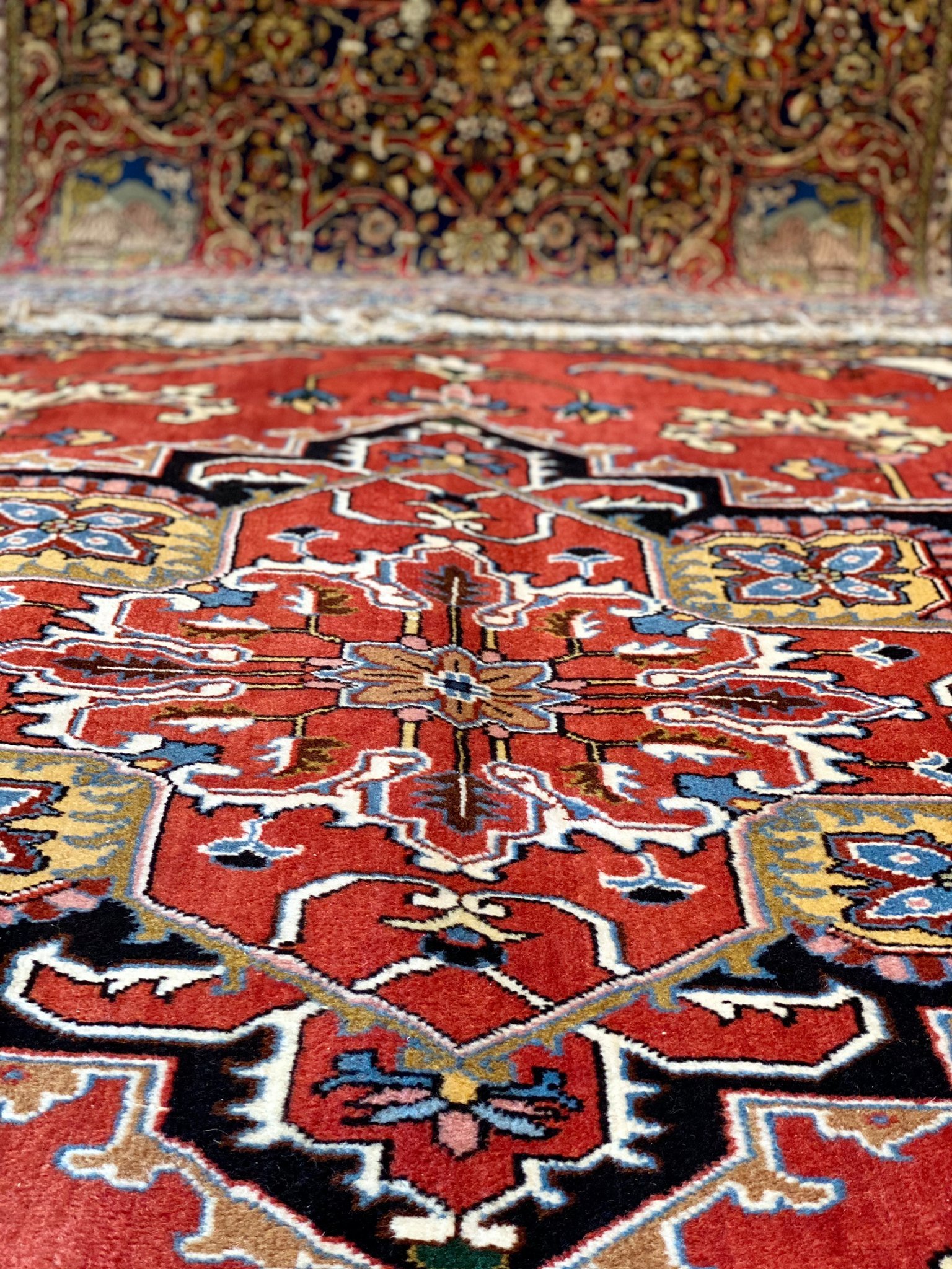Karališkojo kambario grindis puošia Heryso kilimai. Šie kilimai yra rišami Irano Šiaurės Vakaruose, Heryse arba kituose miesteliuose ir kaimuose, išsibarsčiusiuose Sabalano kalno papėdėje. Slėnio klimatas švelnus, o kraštovaizdis vaizdingas. Pavasario metu pievos pasidengia aguonų žiedais. Pasakoju tai, nes Heryso kilimų raštai atkartoja tenykštį peizažą: kalnų karpinius, jų perėjas ir slėnių žydėjimą. Tai vienas seniausių ir lakoniškiausių persiškų kilimų raštų.