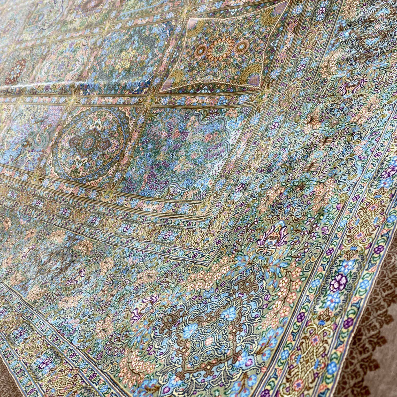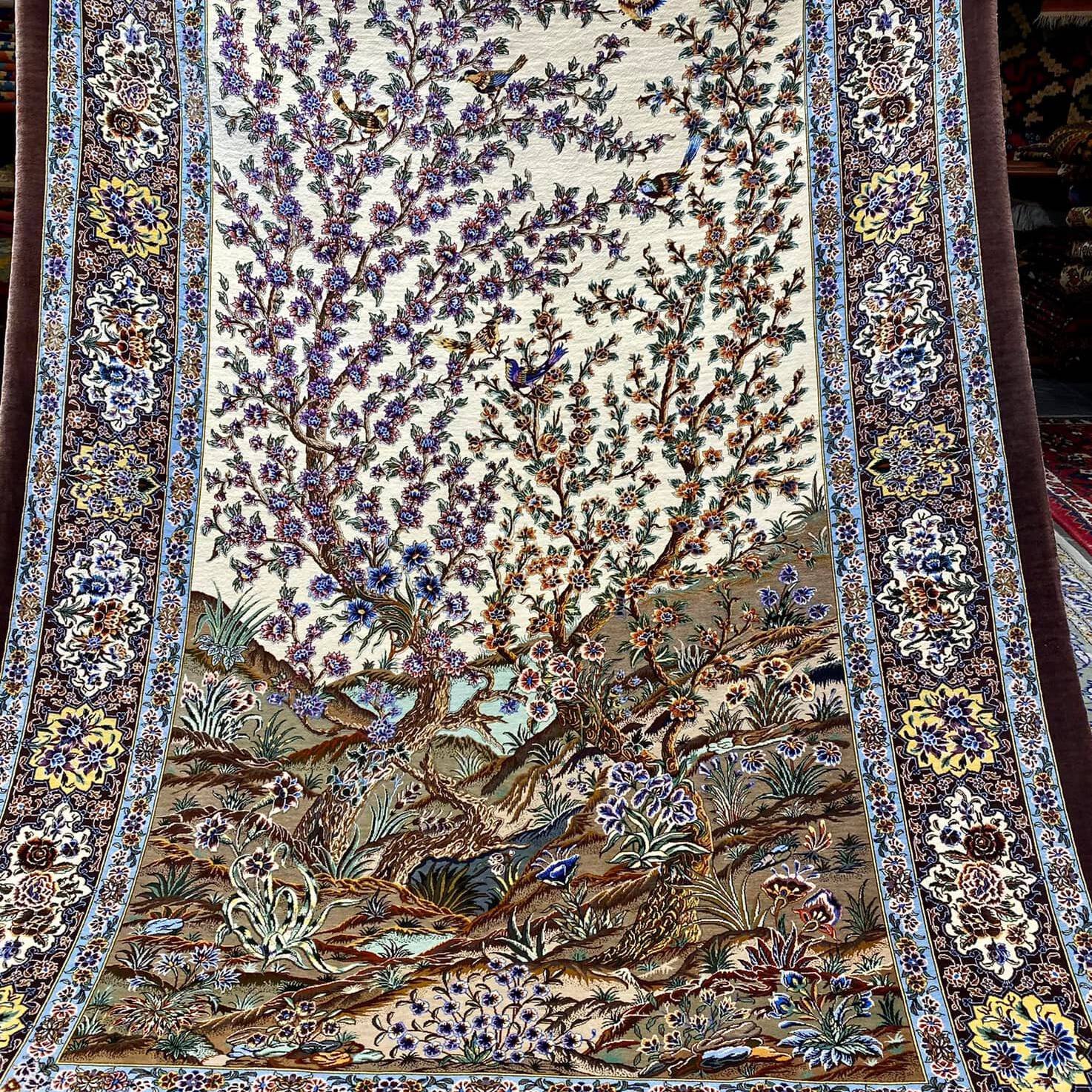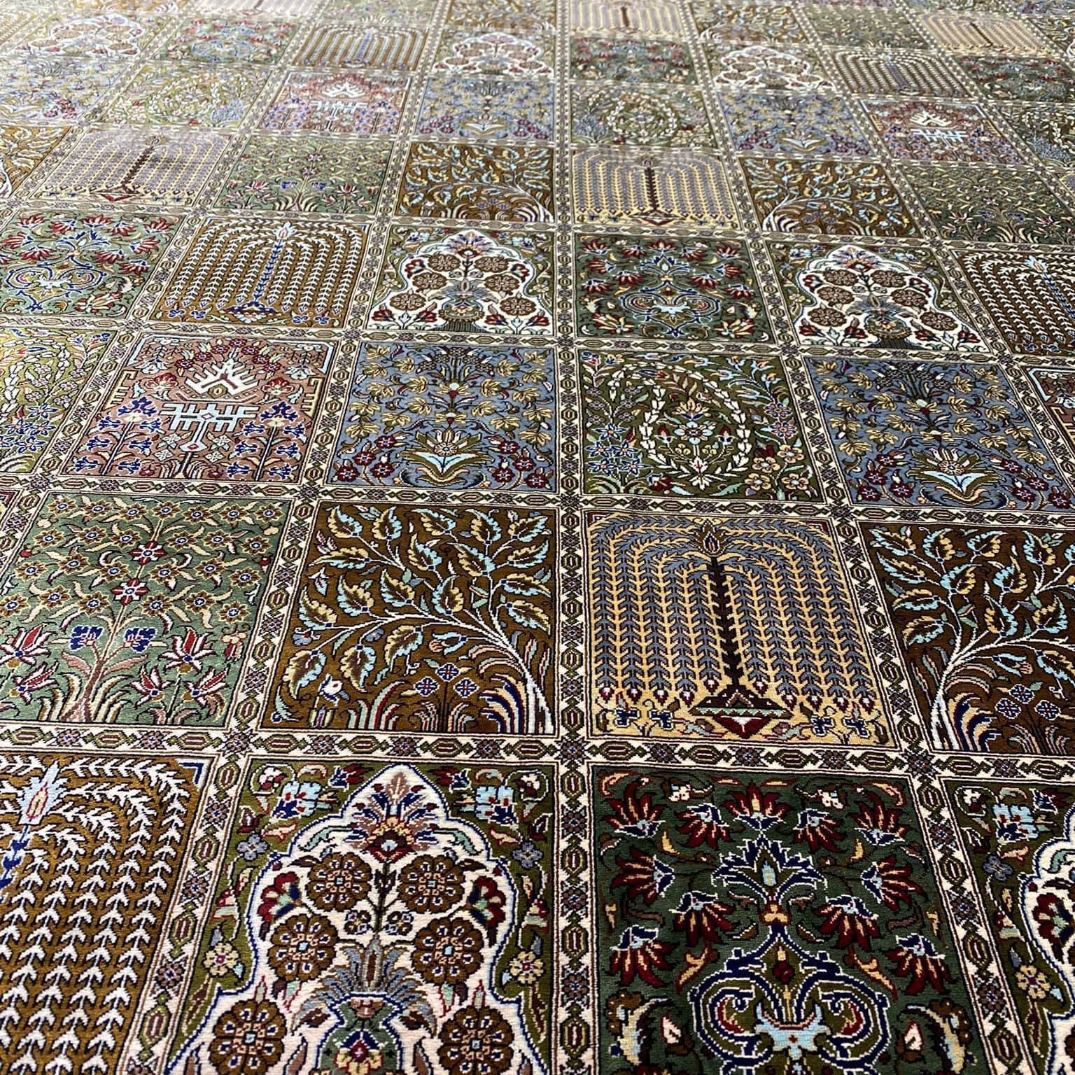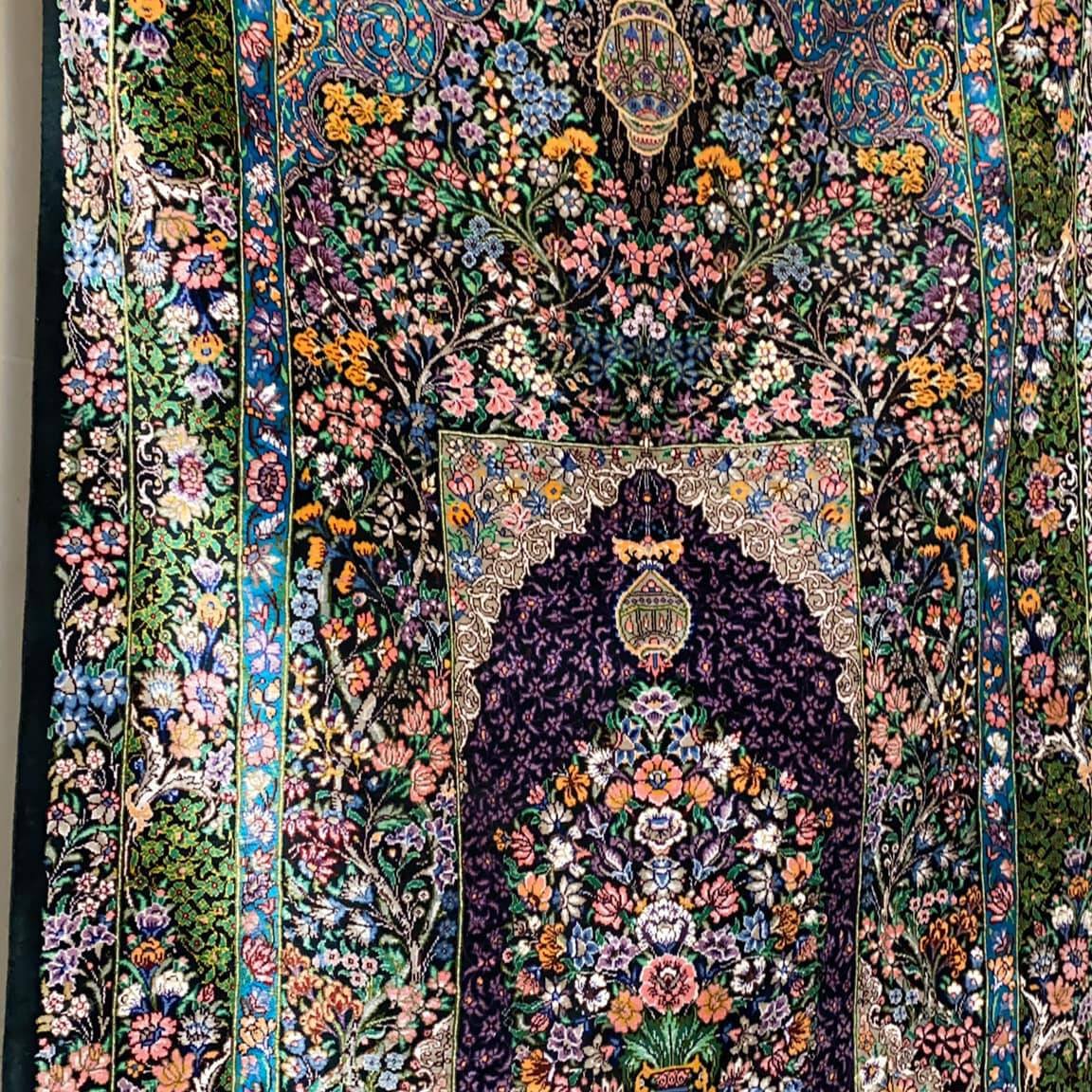 Šis kilimas ypatingas ne tik tuo, kad yra šilkinis ir turi 1 mln. 200 tūkst. mazgų 1 kv.m., o jo linijos tobulai suvaldytos (tokio dydžio kilimuose tai padaryti sudėtinga), bet ir tuo, kad jis yra senosios kartos kilimas, kurio šilko siūlai dažyti augalinius dažais.