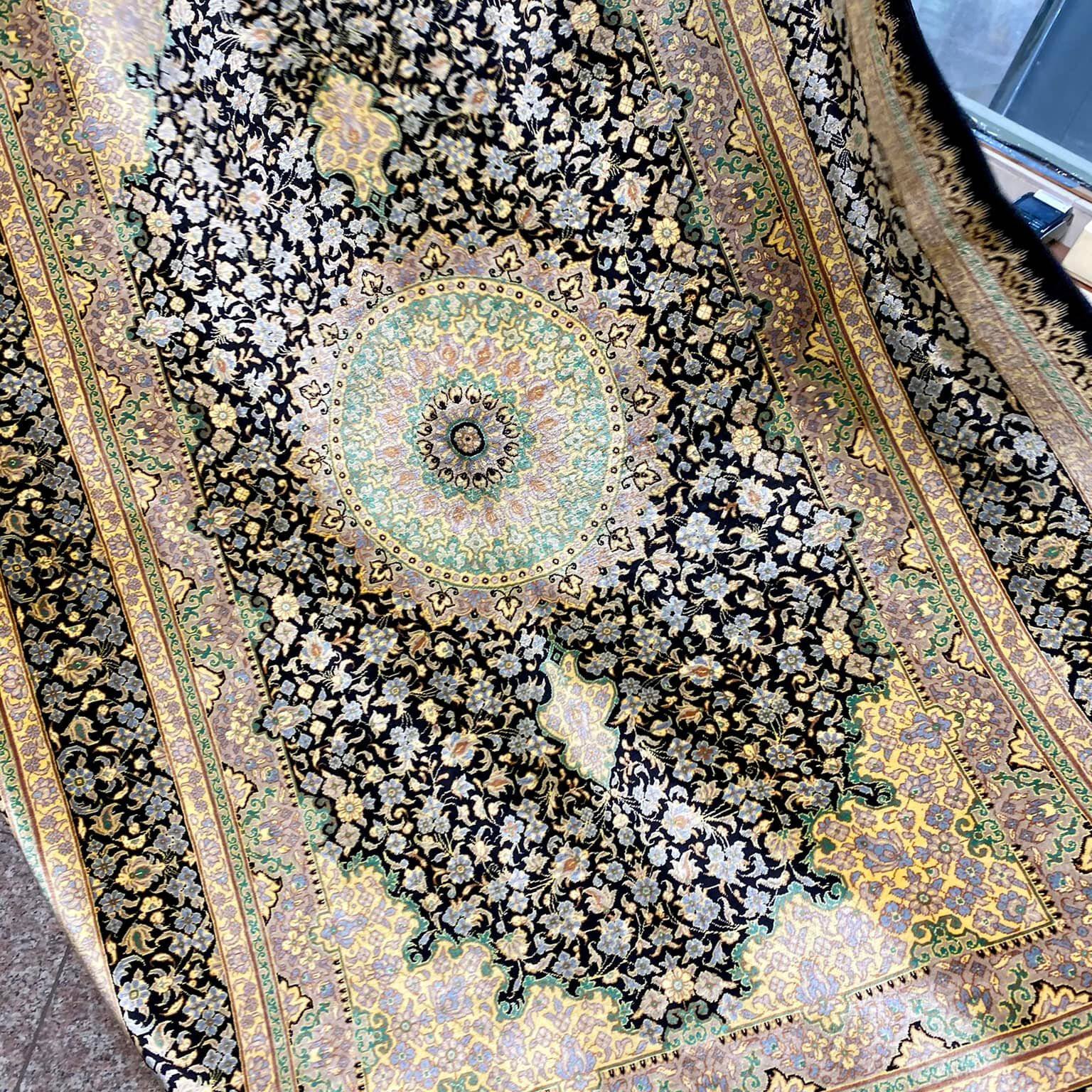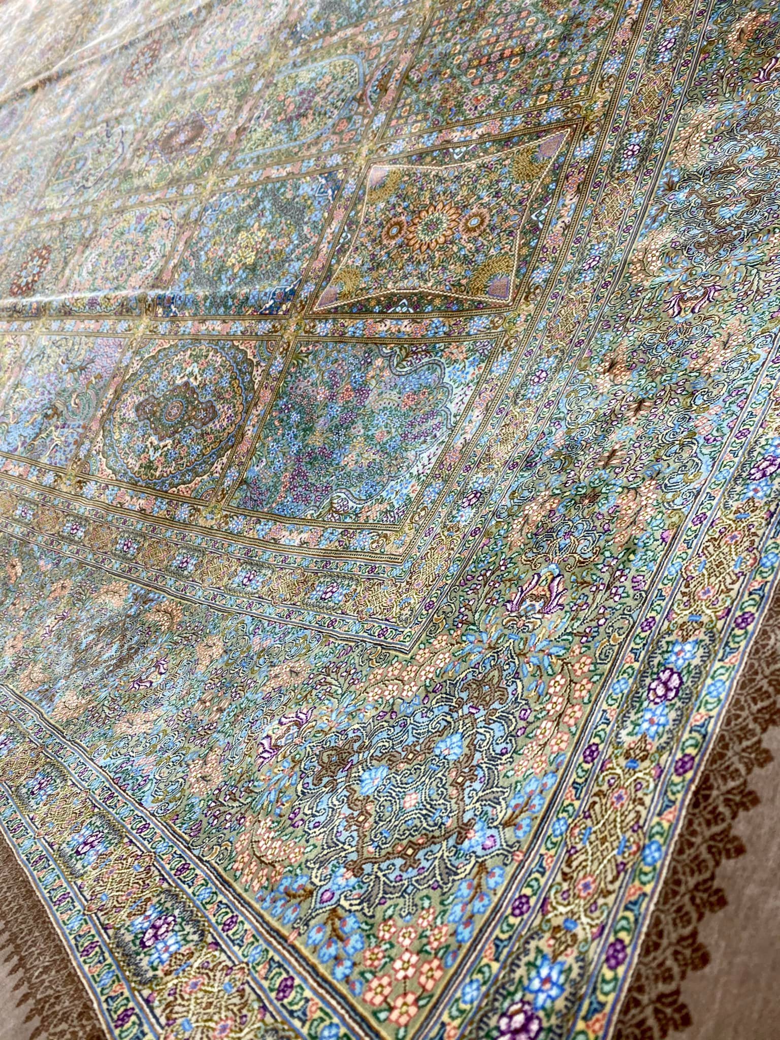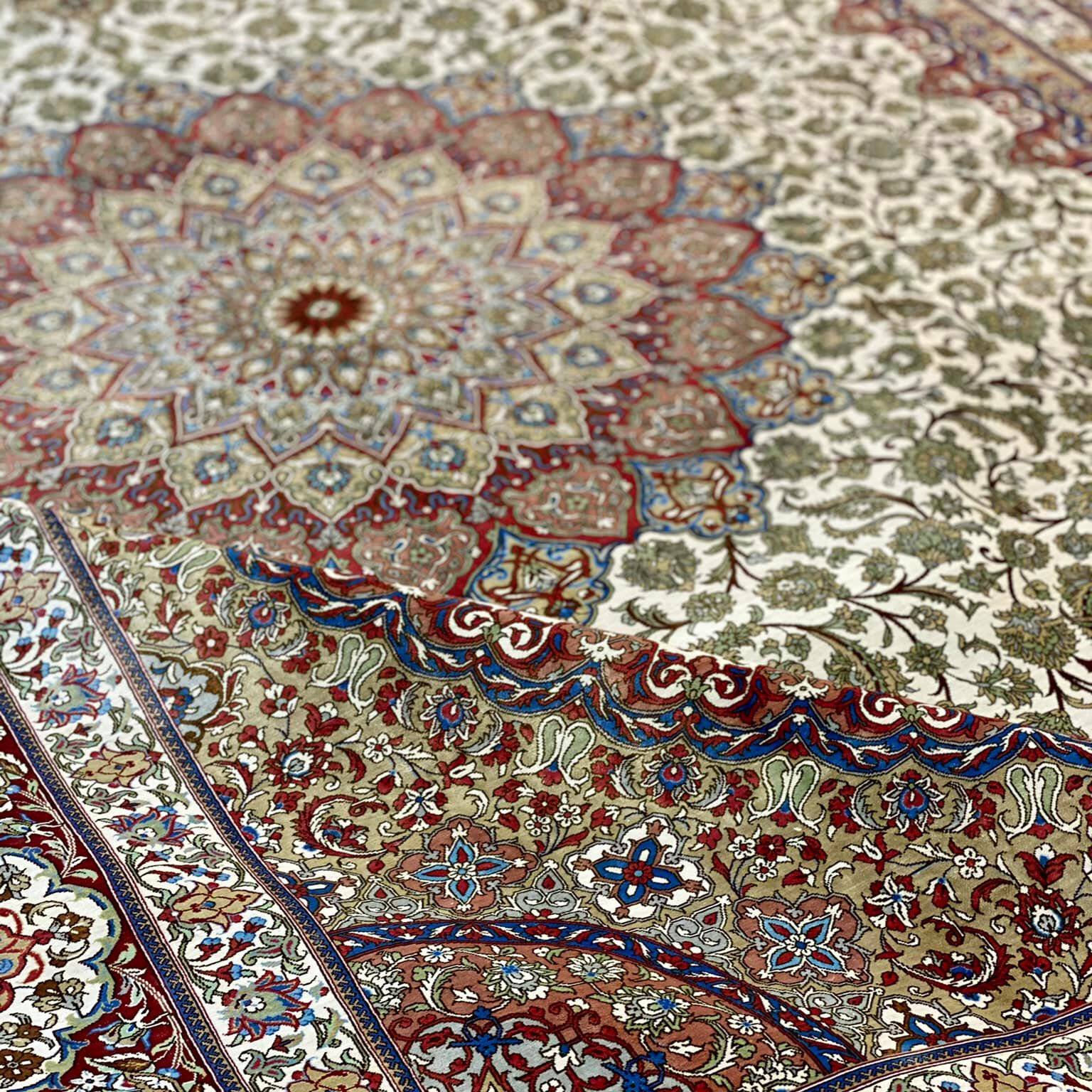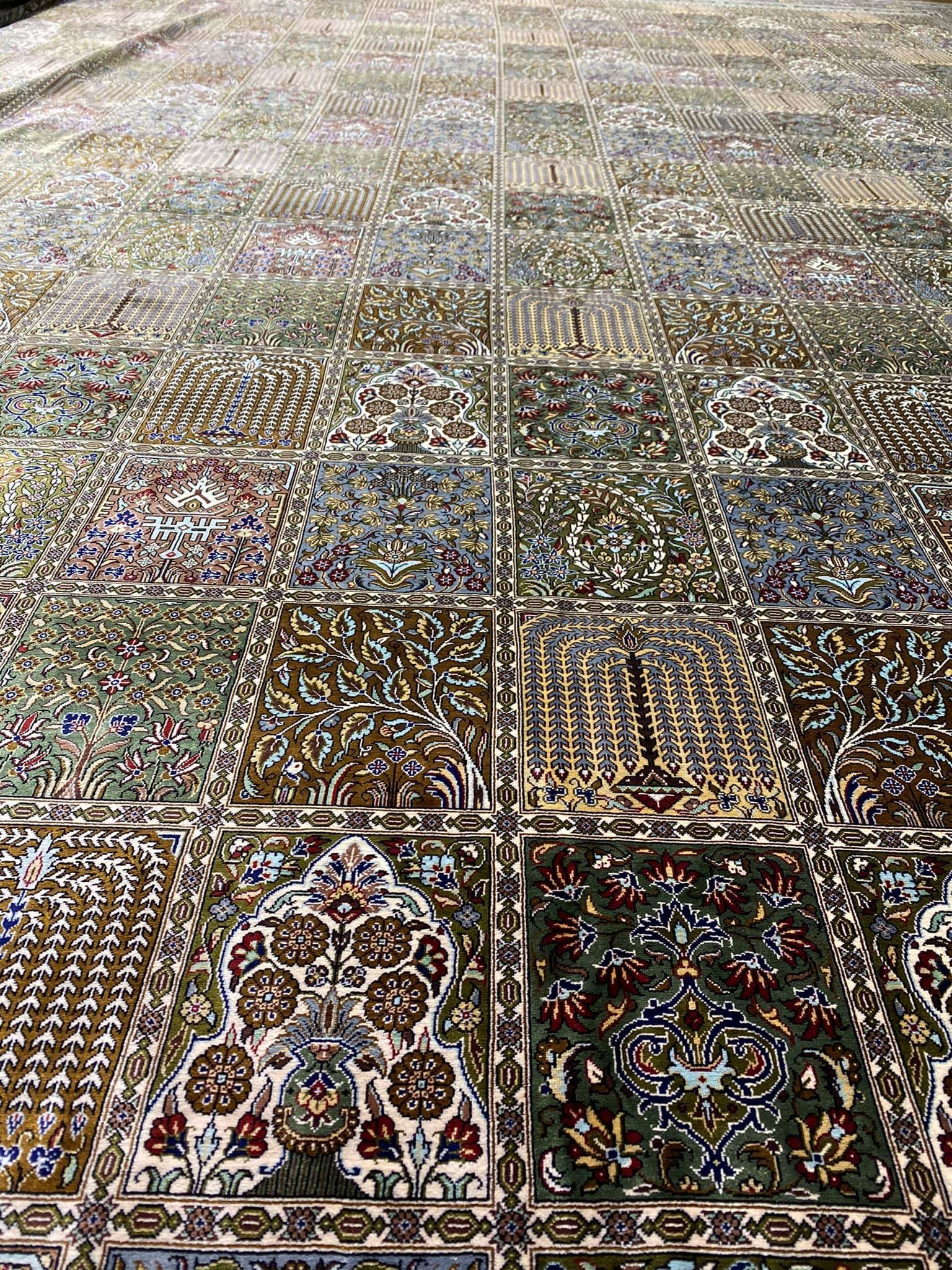 Šis kilimas ypatingas ne tik tuo, kad yra šilkinis ir turi 1 mln. 200 tūkst. mazgų 1 kv.m., o jo linijos tobulai suvaldytos (tokio dydžio kilimuose tai padaryti sudėtinga), bet ir tuo, kad jis yra senosios kartos kilimas, kurio šilko siūlai dažyti augalinius dažais.