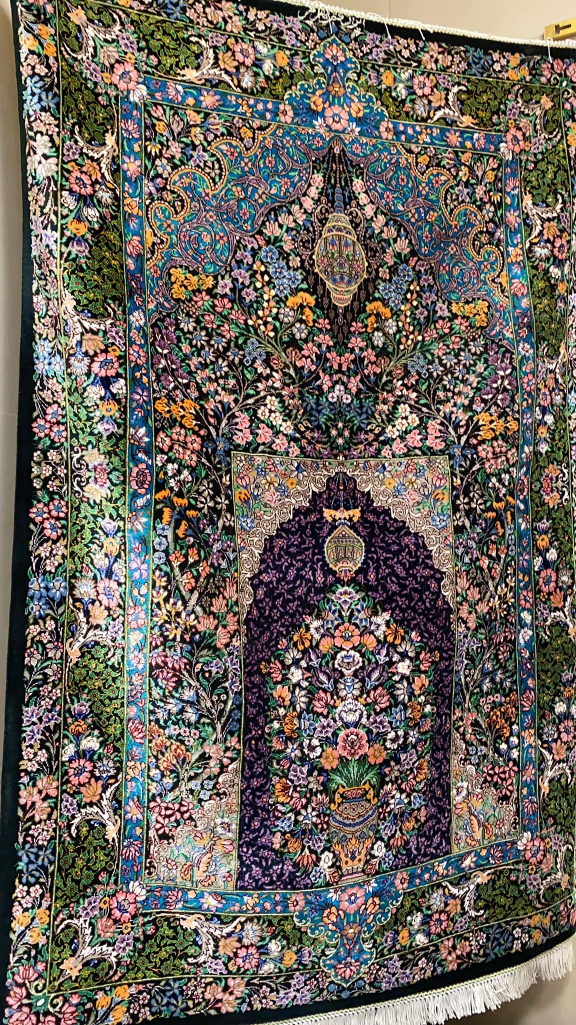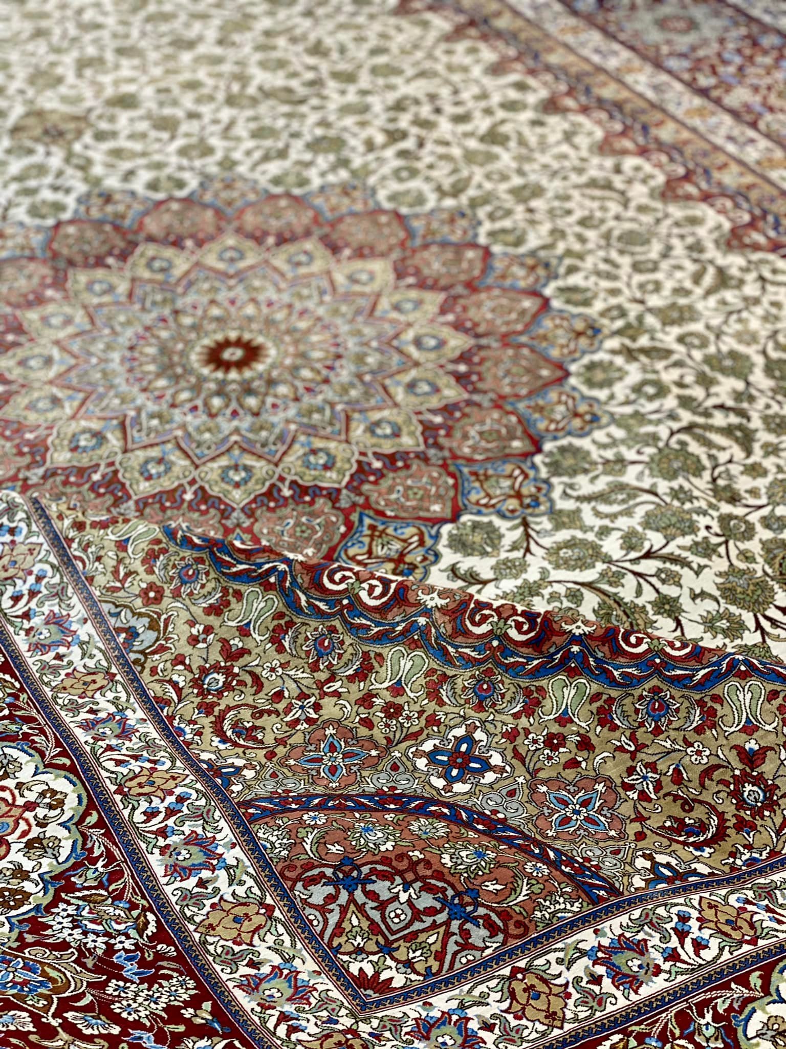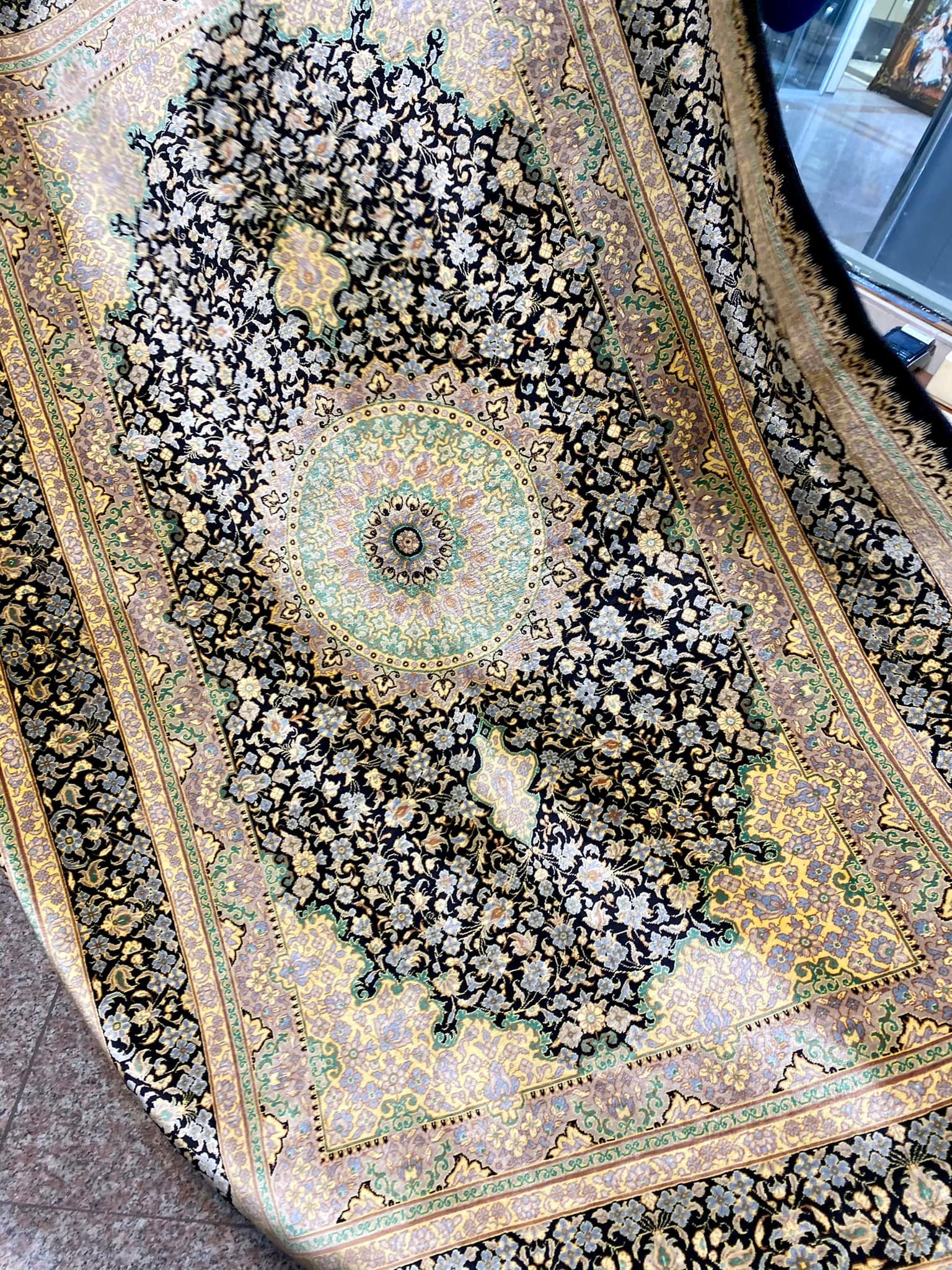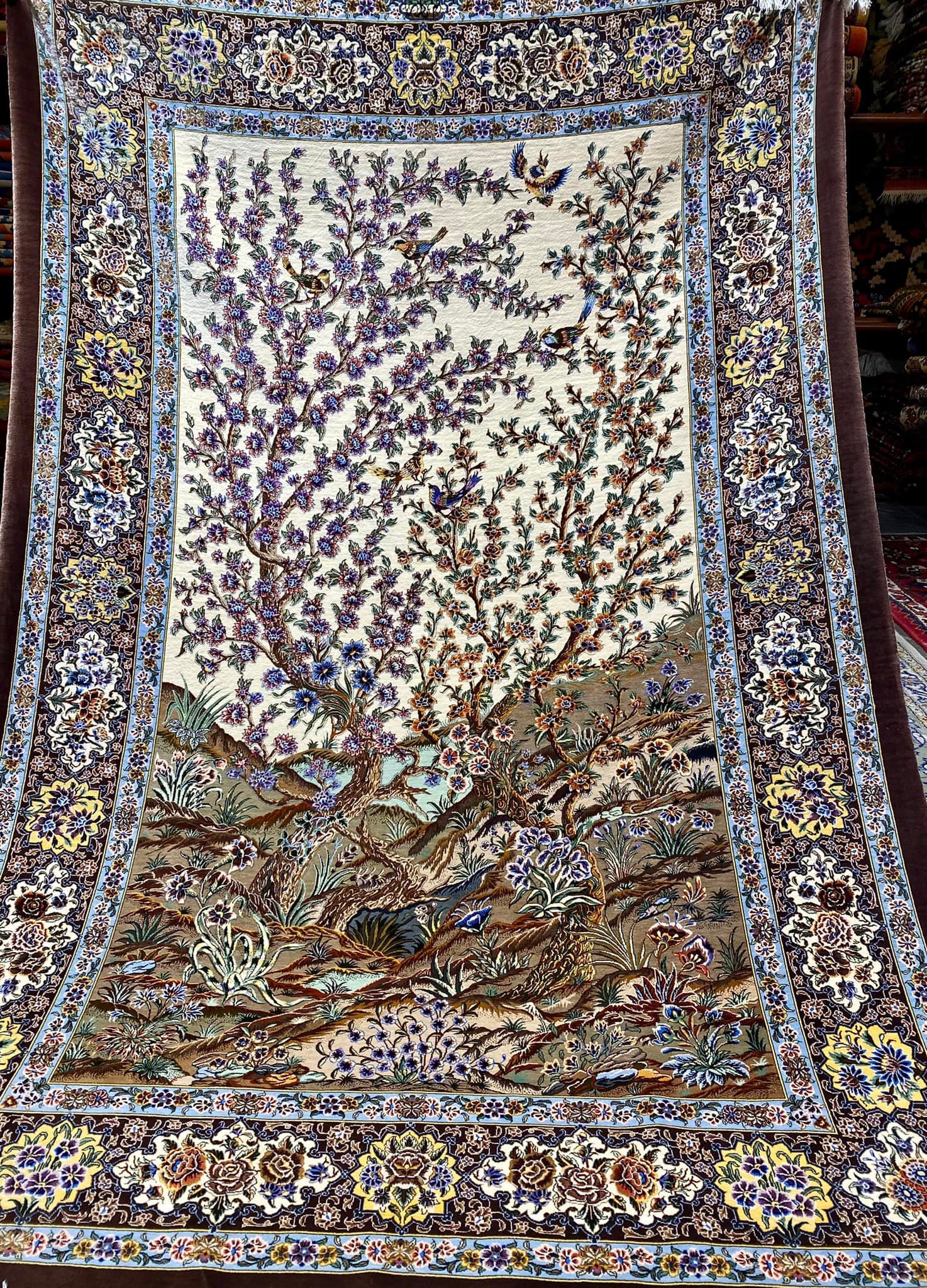 Šis kilimas ypatingas ne tik tuo, kad yra šilkinis ir turi 1 mln. 200 tūkst. mazgų 1 kv.m., o jo linijos tobulai suvaldytos (tokio dydžio kilimuose tai padaryti sudėtinga), bet ir tuo, kad jis yra senosios kartos kilimas, kurio šilko siūlai dažyti augalinius dažais.