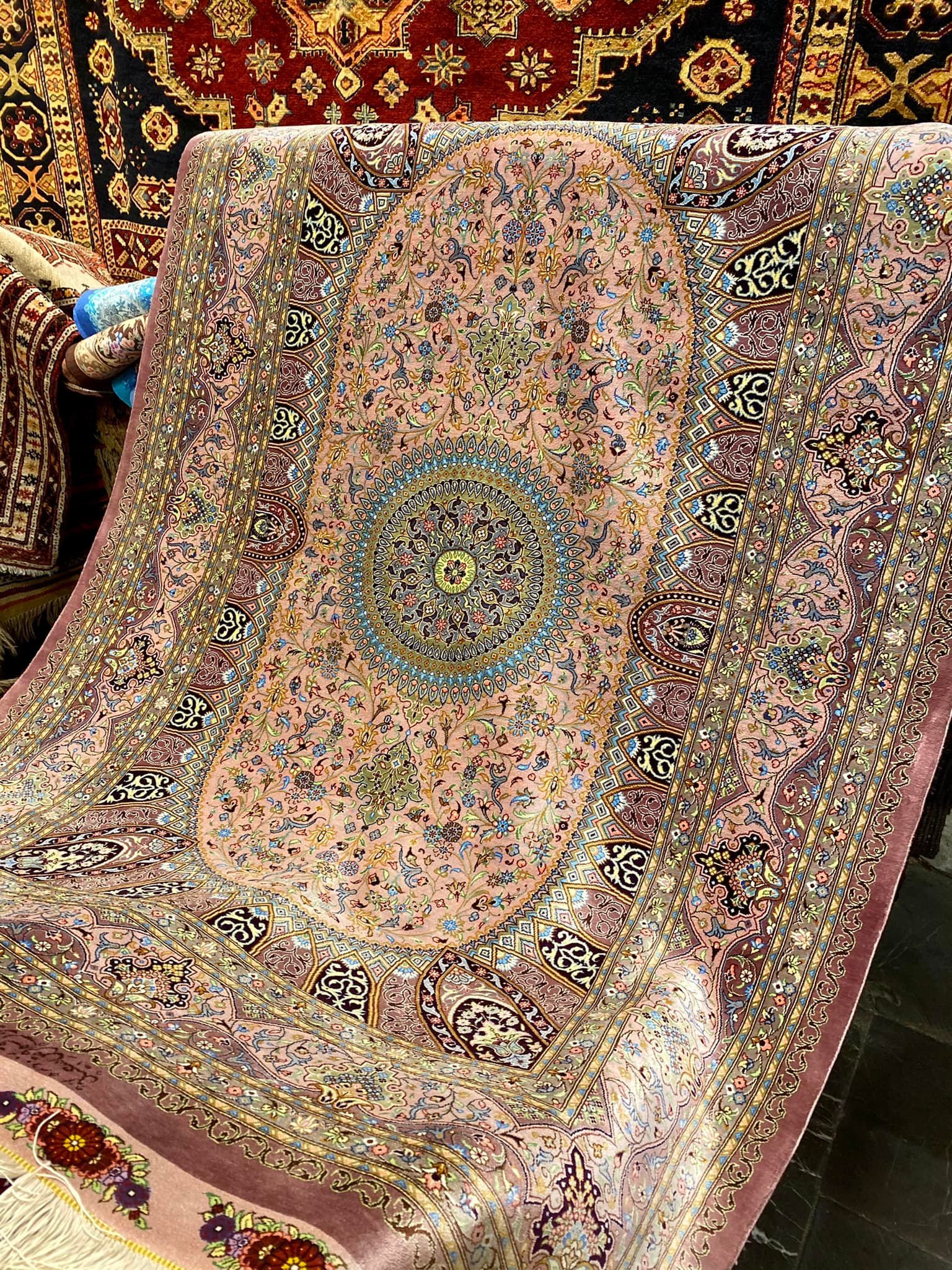 Pagrindinė turgaus salė yra dengta įspūdingu kupolu. Džamšydi, Kašyzadeh, Erami, Radzebian, Babai – tai kilimų meistrų iš Kumo vardai, kuriuos kinai audžia ant persiškų kilimų kopijų, nes šie meistrai pasaulyje geriausi, ir tik ekspertai gali pasakyti, ar kilimas tikras. Vardas gali kilimą pabranginti net kelis kartus. Kiekvienas iš šių meistrų turi arba turėjo savo dirbtuves, pameistrius ir rišėjas.